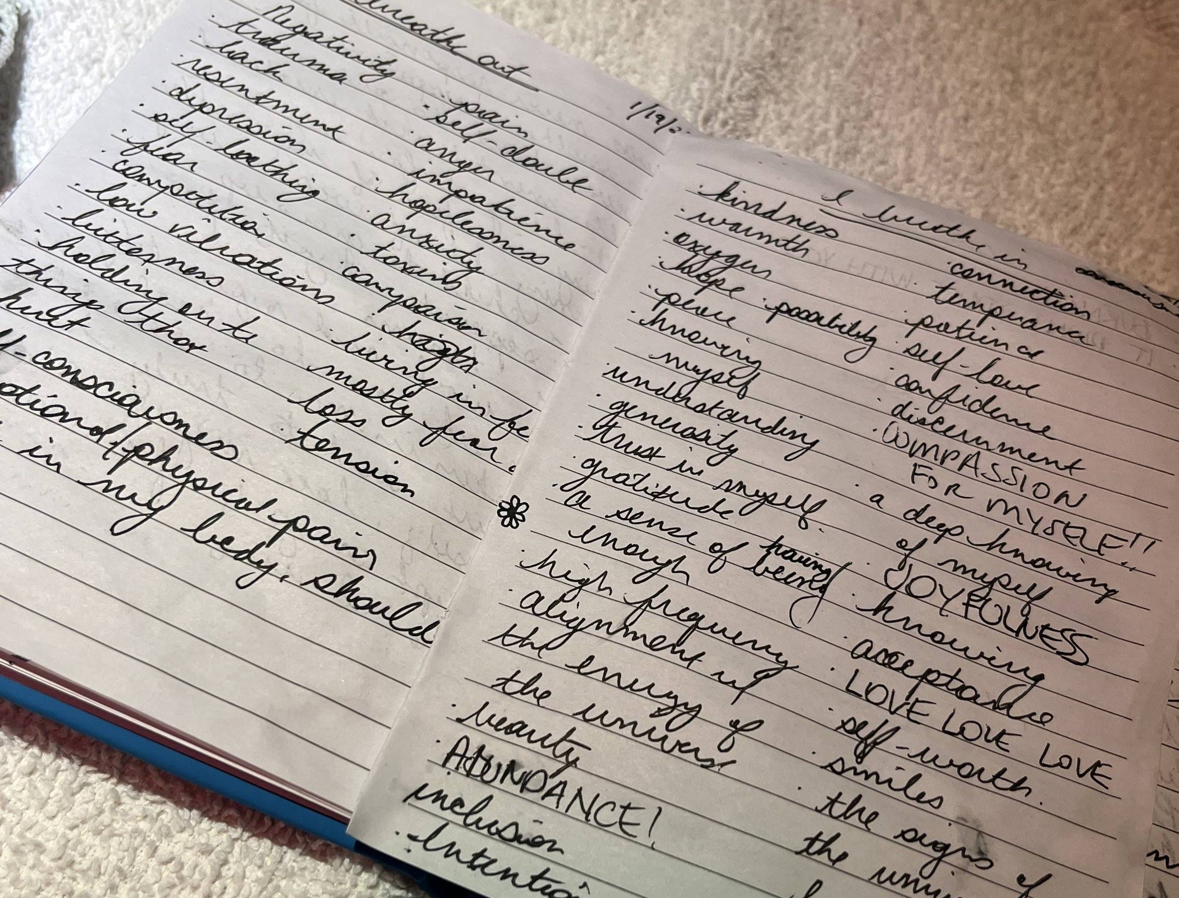 I also loved pairing it with one of my other favorite tools—breath work. On one page, I’d write all the thoughts, worries, and negative feelings I wanted to exhale — to literally sweat out of my body. On the next page, I’d write the things I wanted to inhale — the feelings, qualities, and intentions I wanted to bring in.